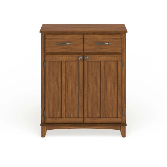 This stylish and functional small server is constructed of hardwood and wood products in a cottage oak finish with an oak wood top. With two utility drawers and two wood-framed cabinet doors, this cottage oak buffet is ideal for a number of spaces and adaptable to a variety of uses.Β