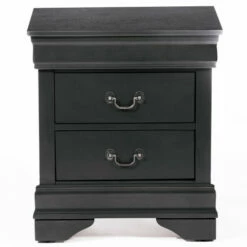 Bedside manner you’ll absolutely love. The Traditional Grey Nightstand is finished in the most soothing dove grey, a shade designed to bring calm and elegance to any bedroom. This beautifully constructed piece features gorgeous molding and antique style bail handles for the perfect classic touches. For your bedside storage needs, this nightstand boasts two drawers of generous dimensions.