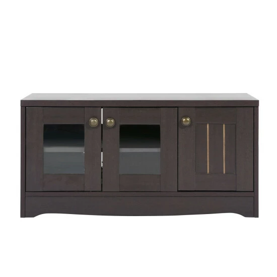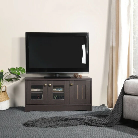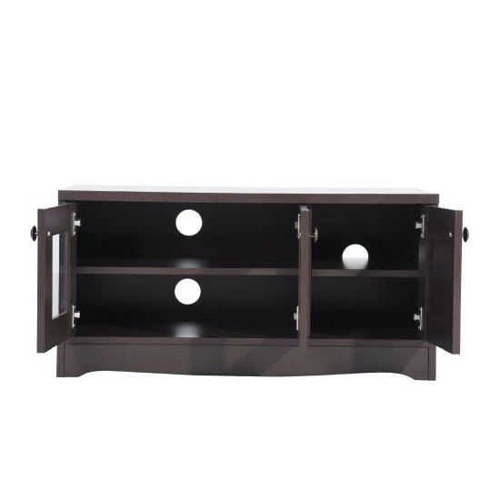 With a rectangular silhouette and a sultry brown finish for an earthy vibe, this TV stand makes for the perfect piece in your living room. Its small footprint allows for efficient storage and a clean, crisp area for movie nights. Sleek, sophisticated, and compact, this TV stand is an attractive addition to your entertainment area.