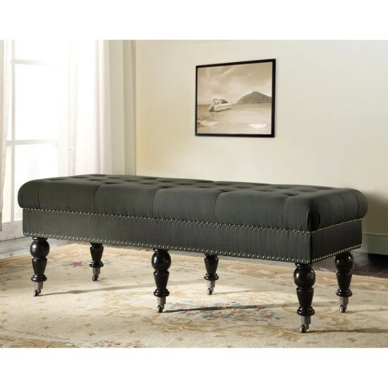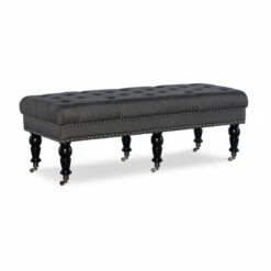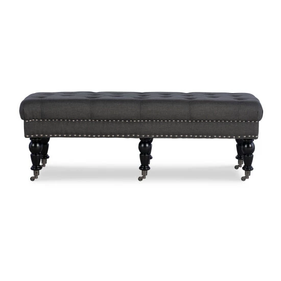 - Button-tufted charcoal upholstery