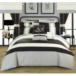 Make one easy purchase and never have to worry again about the decor of your bedroom. This huge Norreskoven bed in a bag set includes 24 pieces that will give you everything you will need for your bedding and window treatments. The pieces are color coordinated with embroidered details in black and white colors to coordinate the look of your bedroom.