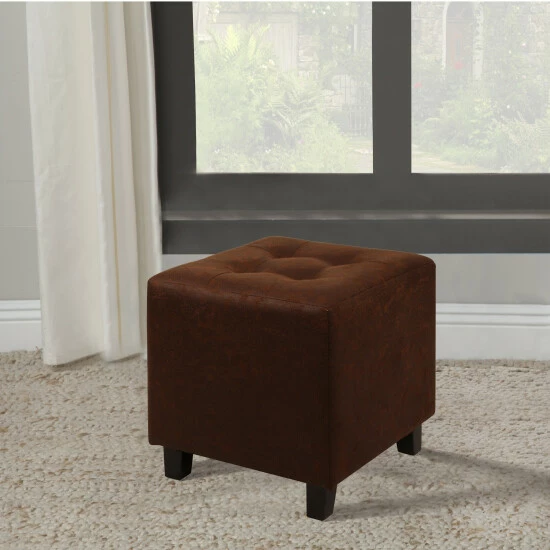 This antique square ottoman with button tufted top is a great accent piece for any room. It can be used as an extra seat or foot rest for those lazy Sundays. Lightweight and sturdy, this ottoman provides a flexible option for your entire home. It is available in antique faux leather black or brown.