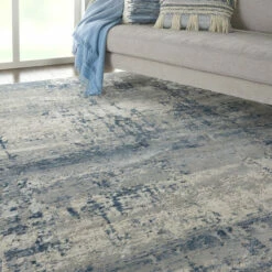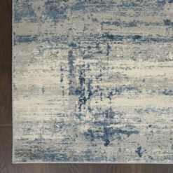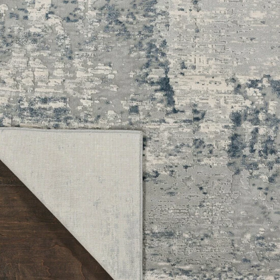 This striking area rug from Copper Grove will add a stylish flair and underfoot comfort to any room. Made of ultra-durable synthetic fibers, this rug is perfect for high-traffic areas. The unique abstract ombre pattern boasts graduating hues of blue, ivory, and grey.