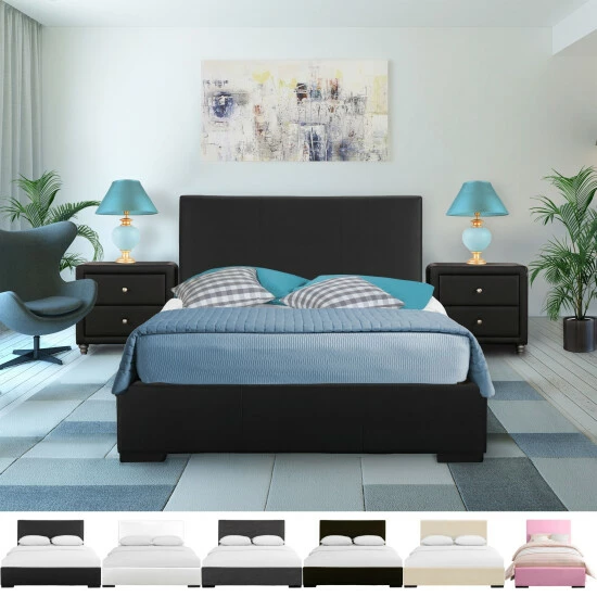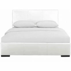 Offer your personal sanctuary a dash of modern style, with this sumptuously upholstered platform bed. Its sleek frame is upholstered in a sultry faux leather for refined elegance. Place your mattress directly on the included Euro slats for easy, sturdy installation.