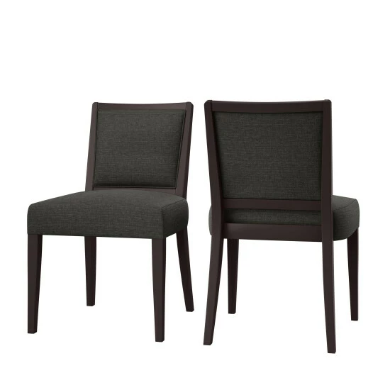 Add extra seating to your living space with this set of armless dining chairs. Crafted with solid wood frames and legs for support and durability, these chairs include upholstered, foam-padded seats for beauty and comfort. Padded backs offer additional support while resting at about shoulder height to encourage comfortable posture.