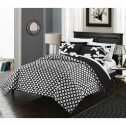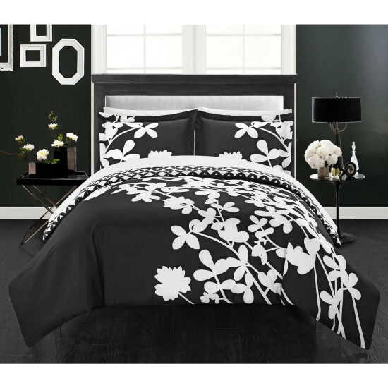 Decorate your bedroom in a fun and stylish way with this 7-piece duvet cover set. This set features a floral pattern in a black color and is available in either a queen or king size. This bedding is reversible to add versatility and longevity.