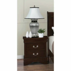 Place a lamp and your favorite book on the top of this Copper Grove nightstand. Silver bail handles let you easily access the two drawers for convenient storage, while the metal-on-metal glides enable smooth movement. Featuring a hardwood-and-veneer construction, this Parkhill nightstand has a cappuccino finish, giving your bedroom a traditional ambiance.