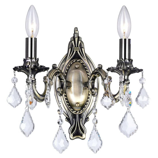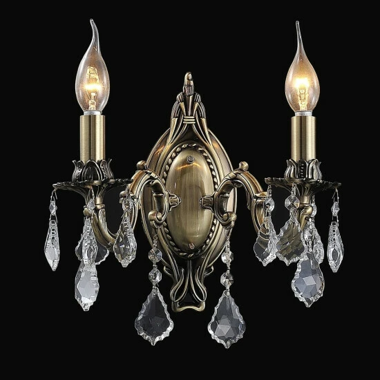 This breathtaking 2-light Wall Sconce with Antique Brass Finish is a beautiful piece from our collection. With its sophisticated beauty and stunning details, it is sure to add the perfect touch to your decor. – Dimensions: H 13 inches x W 15 inches x D 8 inches – Antique Brass Finish – Requires 2 E12 Bulbs Max 60 W (sold separately) – Traditional Style
