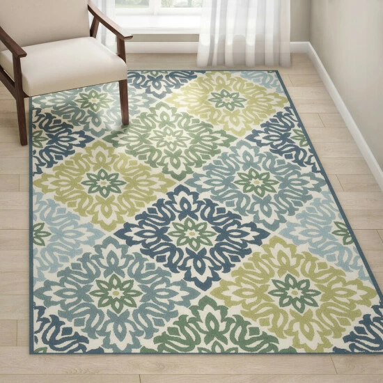 Enliven your patio or living space with this area rug from Copper Grove. Featuring a floral medallion pattern, this latex-free rug adds a playful spring essence to your space.