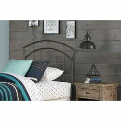 Liven up your bedroom with this classy Pinnacles headboard. This piece features an antique brown finish paired with delicate twisted spindles for a vintage look. An ideal choice for guest bedrooms, children’s rooms and master suites alike, the headboard includes a curved top rail, and lovely tapered sides offer ample style and charm without being overly bulky. The dark finish of this piece easily pairs with your favorite contemporary bedding for a designer-worthy aesthetic.