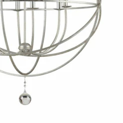 This 6-light chandelier features an olde silver finish that will complement many industrial and transitional decors. The atom shaped steel frame and the hanging clear glass accent adds interest and completes the look of this unique design.