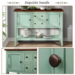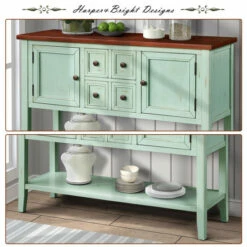 Rectangular console table with clean lines, elegantly tapered table legs exude a high-end, elegant feel. Works great as a console table, sofa table, buffet table, sideboard or entry table in your entryway; also great in hallways, living rooms, even in your office as a space-saving desk. The Sideboard table comes complete with four storage drawers, two cabinets and bottom shelf, so can provide enough storage space.
