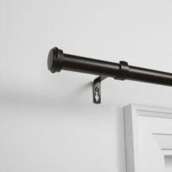This decorative outdoor curtain rod and finial set offers a simple, classic style and traditional design with button end cap finials. This set will provide a visually balanced appearance for your window treatments. The 1.6′ diameter x 0.7′ long finials ensure that your window curtain panels will remain securely on the rod. The 1′ diameter metal rod features a matte,Β rustproof finish that is designed to last.Β The adjustable width rod will fit a wide range of windows and is capable of supporting various fabrics from sheers to thermal blackouts up to 25 lbs.Β Accommodates window curtain panels and drapes that are designed with various tops, including rod pocket, pinch pleat, clip rings, grommets, tab top, or hidden back tab top.Β Β Although great for any living room, bedroom, family room, dining room, bathroom and office, this curtain rod and finial set is the ultimate finishing touch to any pergola, cabana, covered patio, gazebo, deck, or beach home.Β Our stylish rod and finial design will suit any window space.