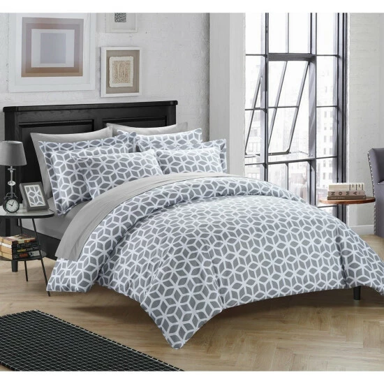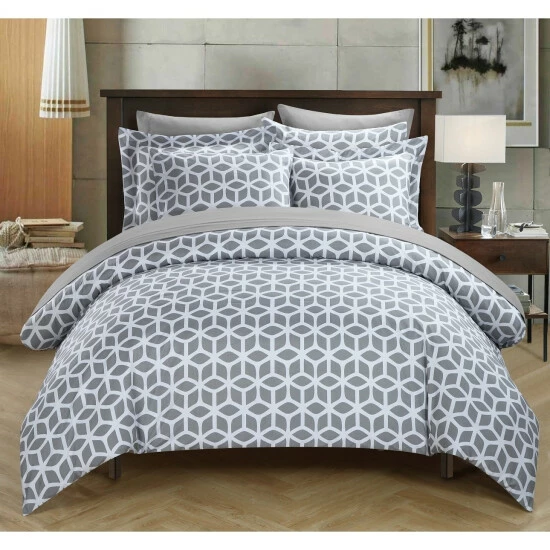 Enjoy both style and versatility with this chic reversible duvet cover and shams Set. Made from super soft brushed microfiber fabric, This geometric duvet set displays a simple yet elegant fretwork design and a reverse color option that allows you to instantly transform your bedroom decor.