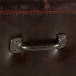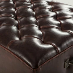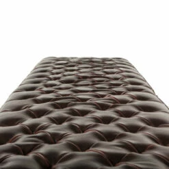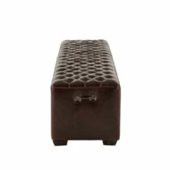 - Upholstered bench wrapped in rich, tobacco-colored bi-cast leather