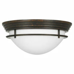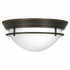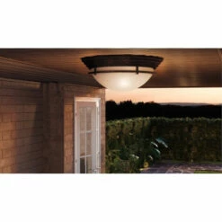 - A simple ribbed frame elevates this coastal-inspired domed flush mount