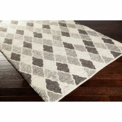 Make your living area shine when you adorn it with this Rock Rose area rug from Copper Grove. The fashionable rug is rendered in grey, charcoal, grey, and ivory colors, and features a Moroccan diamond trellis pattern. Hand-woven from wool and viscose, the moderate traffic rug will bring southwestern style to your space.