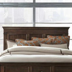 This traditional Saddlebrook panel bed is the perfect way to enhance your room with a transitional style that strikes a pleasant balance between tradition and today’s casual trends. This piece is crafted with rubberwood solids and birch veneers, featuring hook on rails, and a center support slat system, tied together by square peg accents. The deep tobacco finish is sure to add dimension and compliment any space effortlessly.