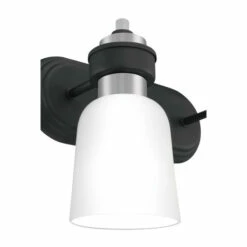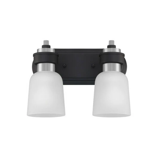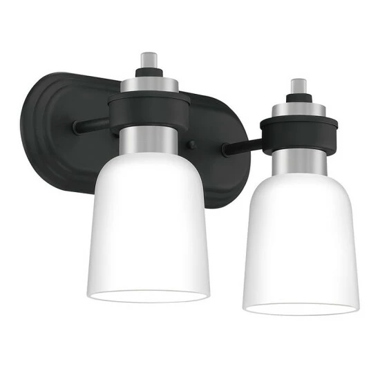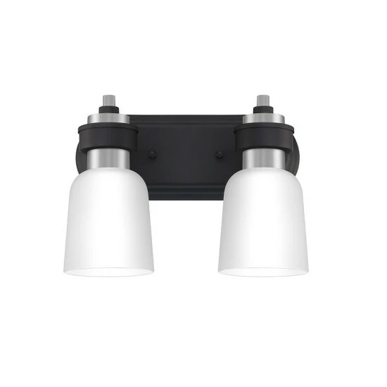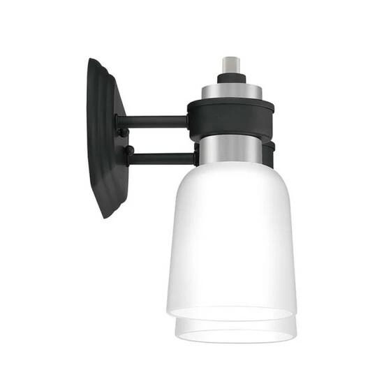 The transitional style of the Conrad collection is both sleek and modern. A stately silhouette finished in matte black and accented with brushed nickel creates the perfect amount of sophistication, and the etched glass shades add a pleasant glow to any room.