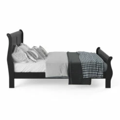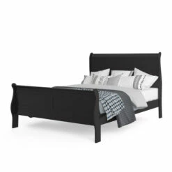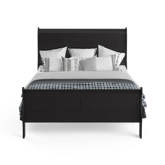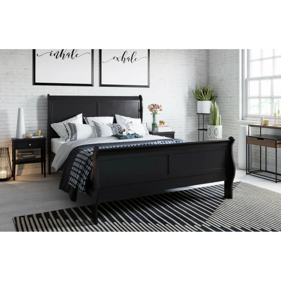 Infuse your room with classic sophistication with this bed. This sleek bed features a sleigh design adorned with framed panels and completed with a rich black finish. You’ll love the touch of drama this bed brings to your room, either on its own or paired with the rest of the pieces in the contemporary set.
