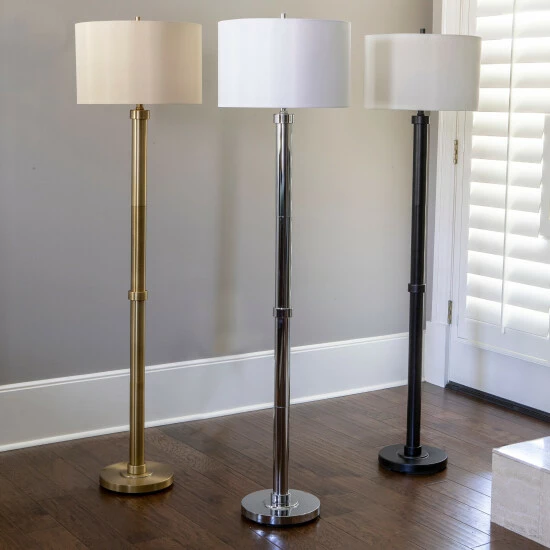 Offer your reading nook that ideal something special: a perfect amount of light under which you curl up in your comfy chair to read and relax. Bask in its soft and welcoming glow as you enjoy your choice of an oil-rubbed bronze or polished chrome finish, not to mention its coordinated, handsome hardback fabric drum shade.