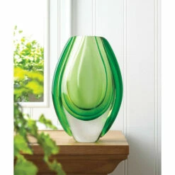 Boasting a sleek, elegant, and altogether suave vibe, this modern art glass vase offers a clear glass body with a simple and soft green color, for a soothing, organic look. Stunning and unique, this gorgeous art glass vase makes for a charming home accent unlike any other.