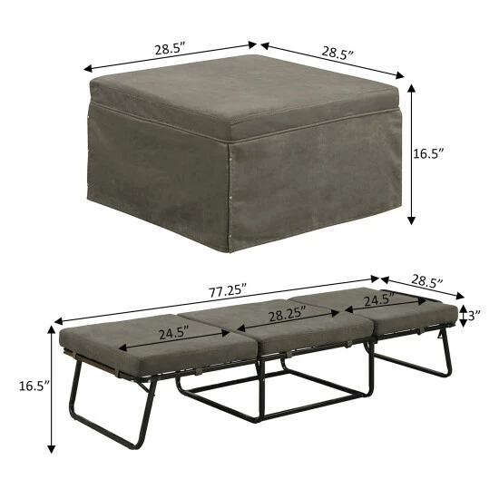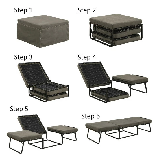 - Ottoman Unfolds into Small Bed in 3 Easy Steps