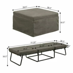 - Ottoman: (L) 28.5 in. x (W) 28.5 in. x (H) 16.5 in.; Bed: (L) 77.25 in. x (W) 20.5 in. x (H) 16.5 in.