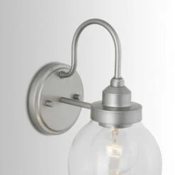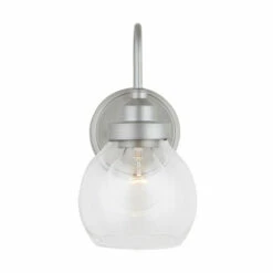 This 1-light wall sconce features a beautifully hand painted brushed nickel finish that will complement many urban, farmhouse, and industrial decors throughout your home. The clean lines of the steel frame add interest while the clear glass shade provides uninterrupted light for many spaces.