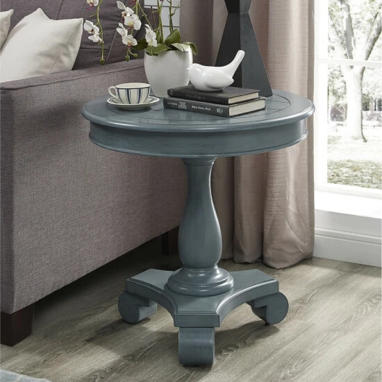 Lend a little something pretty to your space with the chic, artful little side table. The pedestal presents a touch of old-world grace and sensibility to your space, making for a perfect accent piece next to an arm chair or in front of a sunny window. Choose from some delicately balanced finishes to highlight the notes in your decor.