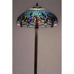 - Hand-cut stained glass shade with a dragonfly pattern adds unique appeal