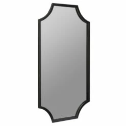 Complement vintage or mid-century decor with this large wall mirror from Copper Grove. Featuring a black-finished frame with scalloped corners, this mirror will has a sleek, understated look that you will love.
