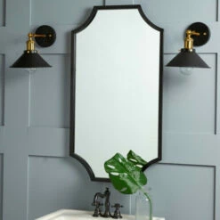 Complement vintage or mid-century decor with this large wall mirror from Copper Grove. Featuring a black-finished frame with scalloped corners, this mirror will has a sleek, understated look that you will love.