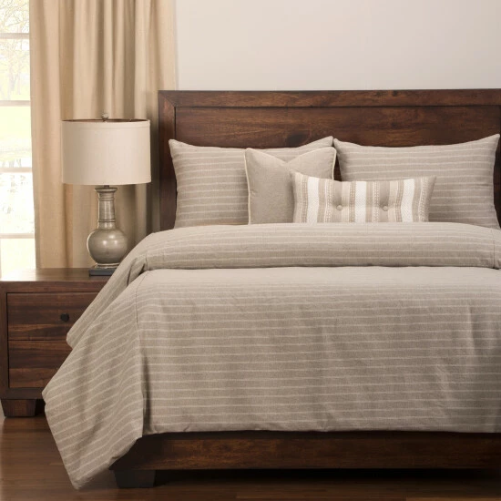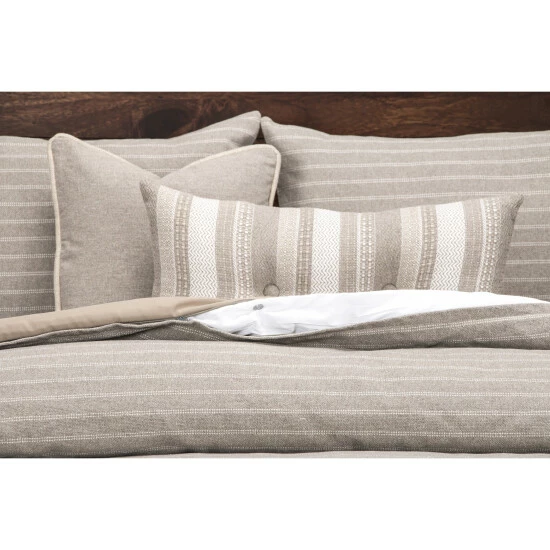 Add a new dynamic of texture to your bedroom with this duvet cover set from Copper Grove. Constructed of cotton burlap, this beige duvet set has a textured weave accented by delicate white stripes to add contrast and a classic farmhouse feel to your style.Β