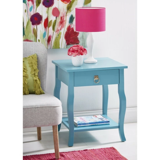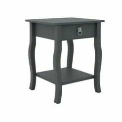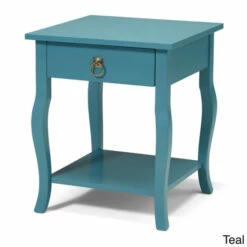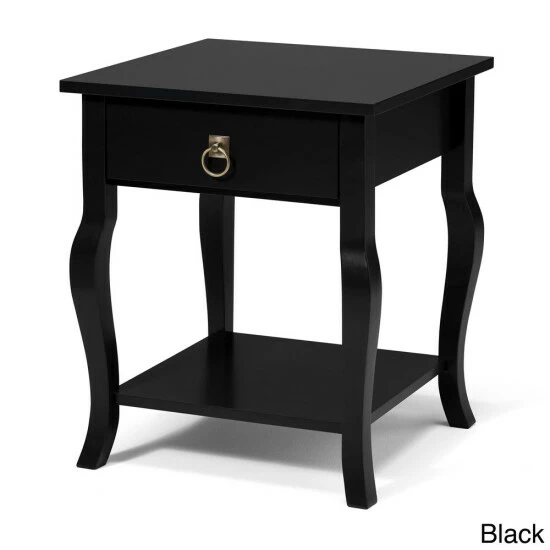 - A square top and a sliding drawer for storage