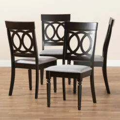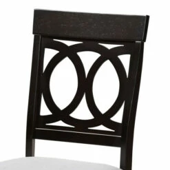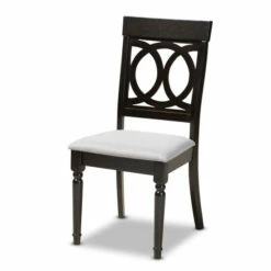 Enhance your dining space with the elegance of the dining chair. Constructed from solid oak wood, the showcases a rich espresso brown finish that complements the light polyester fabric upholstery. Designed with both comfort and style in mind, the features a plush foam-padded seat, as well as an exquisite cut-out design on its back.