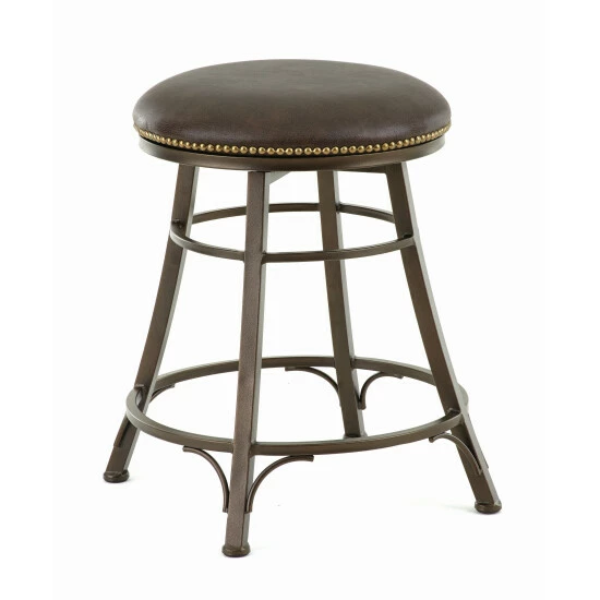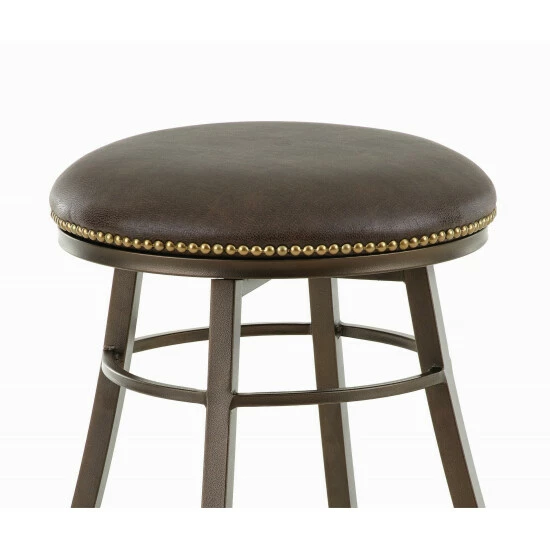 Ideal for an industrial decor setting, this Tejeda metal stool from Copper Grove will add minimalist industrial appeal to your home. The brown powder-coated metal frame and dark brown bonded leather are finished with a gold-tone nail-head finish. Use this Tejeda stool with other industrial pieces accented by steel, brass, and dark leather to complete the aesthetic.