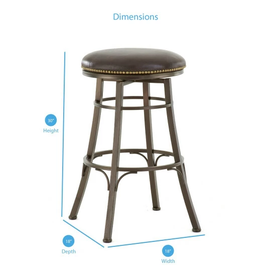 - Bar stool: 30 inches high x 18.5 inches wide x 18.5 inches deep