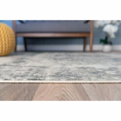 Elevate your living space by softening a hardwood floor with this distressed area rug. A traditional medallion pattern in neutral cream and grey blends harmoniously into many aesthetics, and the stain-resistant polypropylene yarn makes this durable rug easy to keep clean.