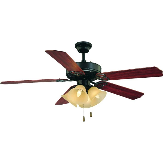 This sleek ceiling fan combines a remarkable antique bronze finish with a delightfully traditional flair. Beautifully illuminate your room with this 4-light fan accented with sepia glass. Installation is truly painless with step by step instructions, perfect for any do-it-yourself project. With low upkeep requirements, the Collection is a great addition to any space Designed with a resilient frame and 52 inch blade span, it complements almost any indoor decor and will help bring a relaxing breeze to your home.