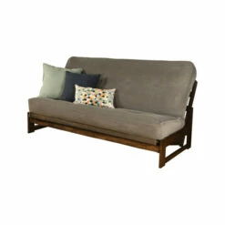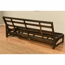 Update the furniture in your living room with this mocha futon frame and mattress. Perfect for any room or office, this piece of furniture easily unfolds from its lounging position to a flat full size bed. The mattress is available in blue or brown microfiber and is plenty comfortable. The functional futon frame can be placed in any room for added seating or sleeping space.