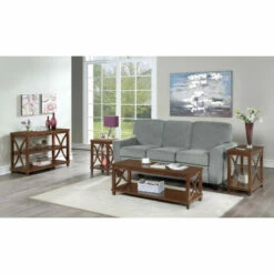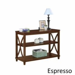 Spruce up any living space with the Copper Grove Valencia Console Table style of the . Thoughtfully developed and designed, this versatile console table provides both stability and style. With its detailed double-edge top and bottom, this table is sure to liven up the room. Including a soft X-shaped side, this table also features a middle and bottom shelf great for displaying decor. Constructed of durable rubberwood and finished with an oak veneer, enhanced with your choice of multiple finishes.
