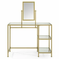 Stylish and modern, the 3 Piece Vanity Set is an eye-catching addition to any home. With a sturdy steel frame and tempered glass on the top and shelves, this vanity set has a sleek look that can be paired with a variety of decor. The 3 Piece Vanity Set features an adjustable tilting vanity mirror and cushioned vanity stool making it the perfect complement to a bathroom, bedroom or dressing area.