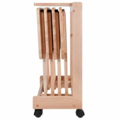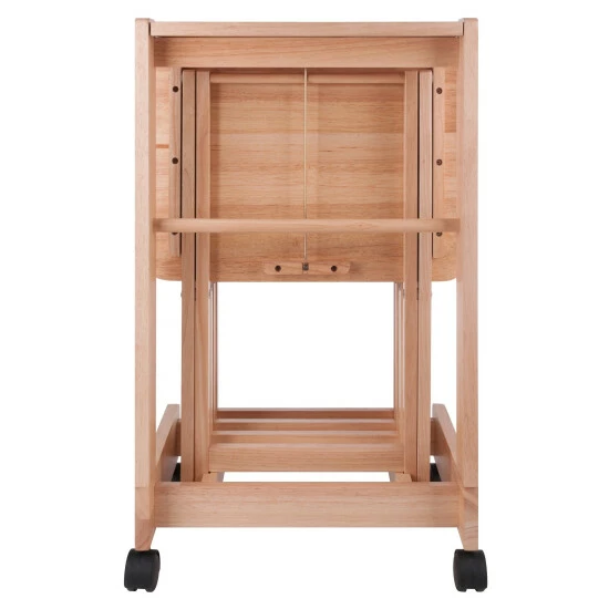 Do TV dinners American style this weekend with the family, with some help from this five-piece flip-top snack table set. Four fully assembled snack tables open and close in an instant. The storage stand has a tabletop itself to provide additional space, while the whole piece rolls easily on casters, two of which are locking.
