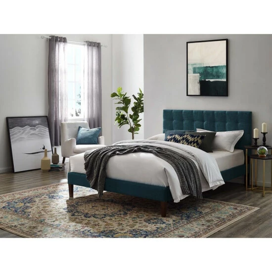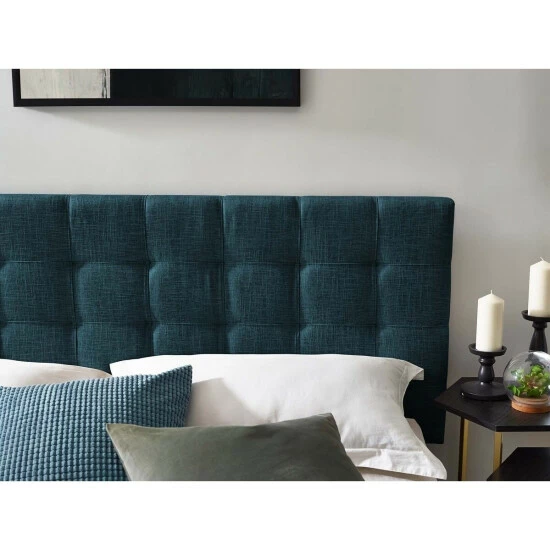 Finish your child’s bedroom with a soft touch when you install this upholstered headboard. This twin headboard features a fiberboard and plywood frame for strength and dense foam padding covered by tufted linen fabric for a comfortable finish.