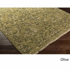 Wonderfully constructed with classic style, this Volcans accent rug from Copper Grove will rejuvenate your decor. The trendy rug is hand-knotted from wool, cotton, and viscose for a soft feel and high traffic durability. The elaborate damask pattern is available in olive or grey, and features classic style.