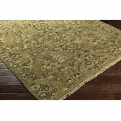 Wonderfully constructed with classic style, this Volcans accent rug from Copper Grove will rejuvenate your decor. The trendy rug is hand-knotted from wool, cotton, and viscose for a soft feel and high traffic durability. The elaborate damask pattern is available in olive or grey, and features classic style.
