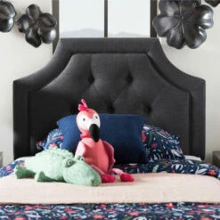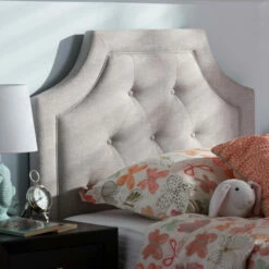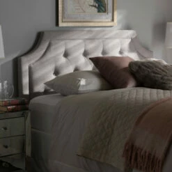 Bring something truly grand and glamorous to your sleep space with this distinguished headboard. Traditional design sensibilities like button tufting and piped detailing bump up the design for some unforgettable interest. The cut-out corners are made to last with polyester upholstery in your choice of classic shades.