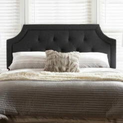Bring something truly grand and glamorous to your sleep space with this distinguished headboard. Traditional design sensibilities like button tufting and piped detailing bump up the design for some unforgettable interest. The cut-out corners are made to last with polyester upholstery in your choice of classic shades.