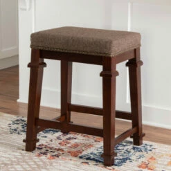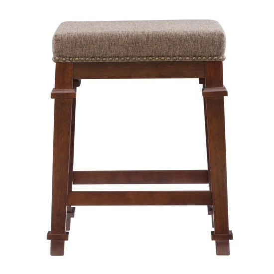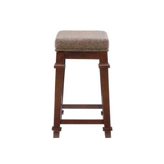 Add sturdy and stylish seating to your counter or high-top table with the Kennedy Backless Counter Stool. Crafted from wood, the stool features splayed legs accented by decorative wood trim. Finished in walnut, the seat is plushly upholstered in brown tweed fabric. Brushed bronze nailhead trim completes the look.